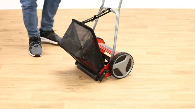 The plastic roller has a diameter of 45 mm. the manual lawn mower has lawn-friendly large wheels. the 16 liter grass catch basket is removable and easy to empty, A curved long handle provides optimum on-the-job ergonomics, and there is a parking position for easy and secure storage of the lawn mower